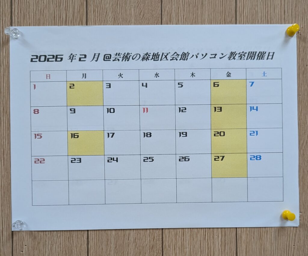 芸術の森地区会館パソコン・スマホ教室2月の開催日
